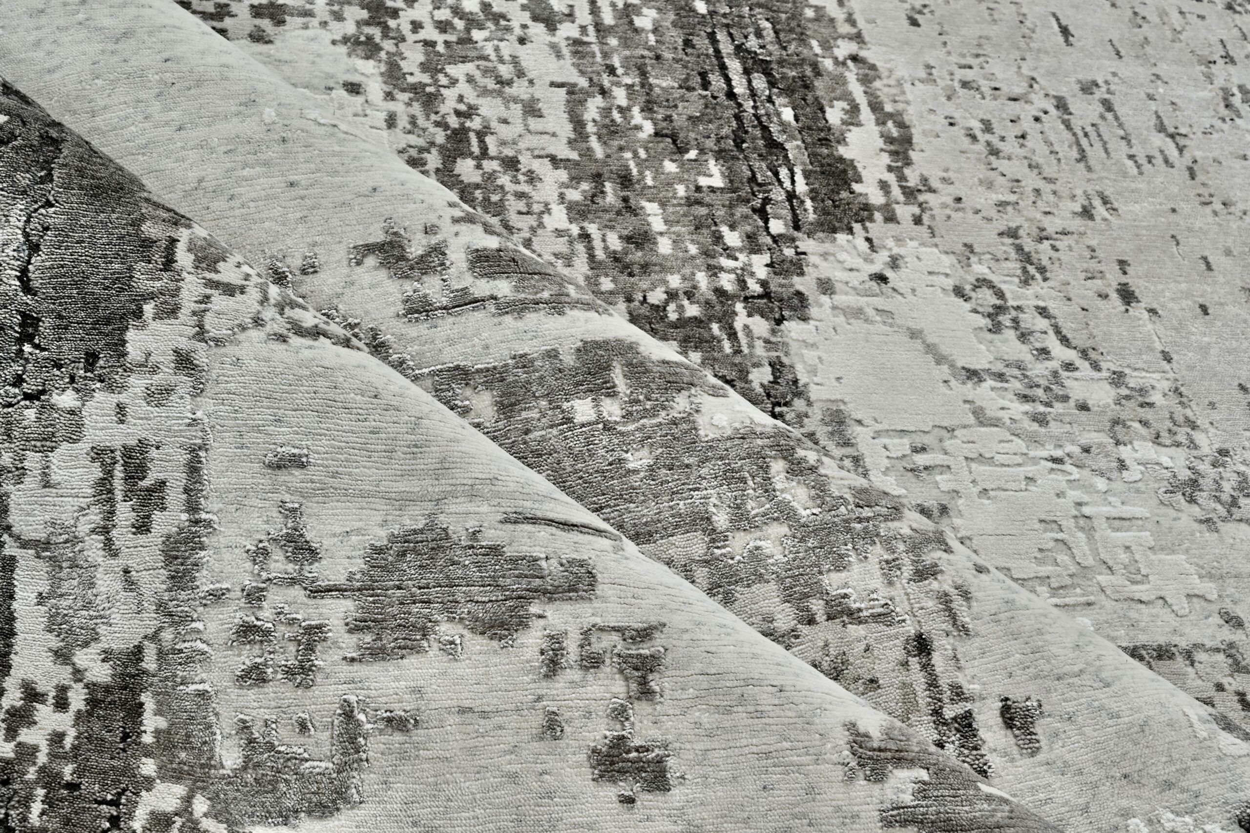 Crafted from luxurious bamboo silk, this hand-knotted rug features a modern abstract design with fluid patterns and a soft, luminous finish. A refined statement piece that brings contemporary elegance and artisanal craftsmanship to any space.