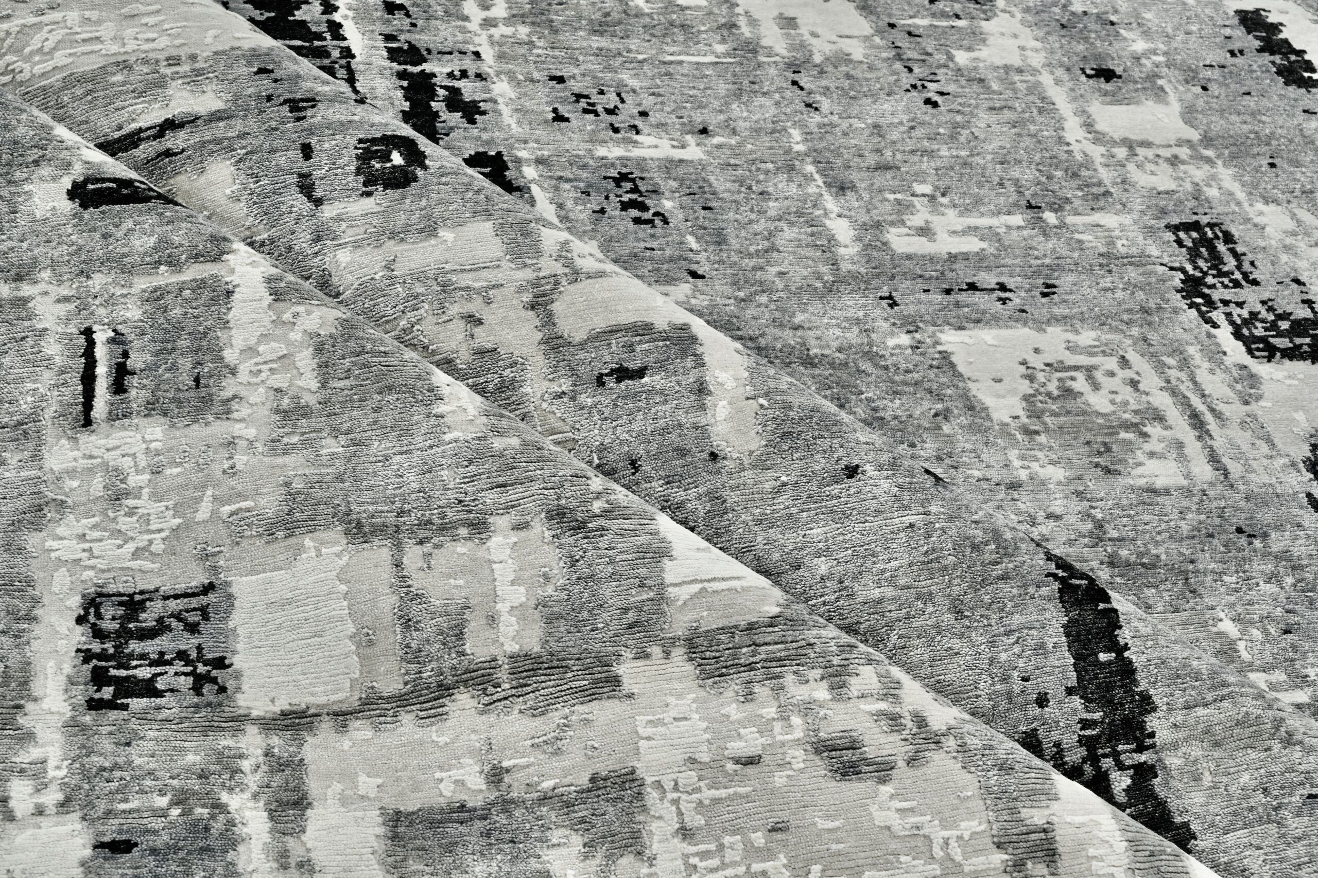 Crafted from luxurious bamboo silk, this hand-knotted rug features a modern abstract design with fluid patterns and a soft, luminous finish. A refined statement piece that brings contemporary elegance and artisanal craftsmanship to any space.