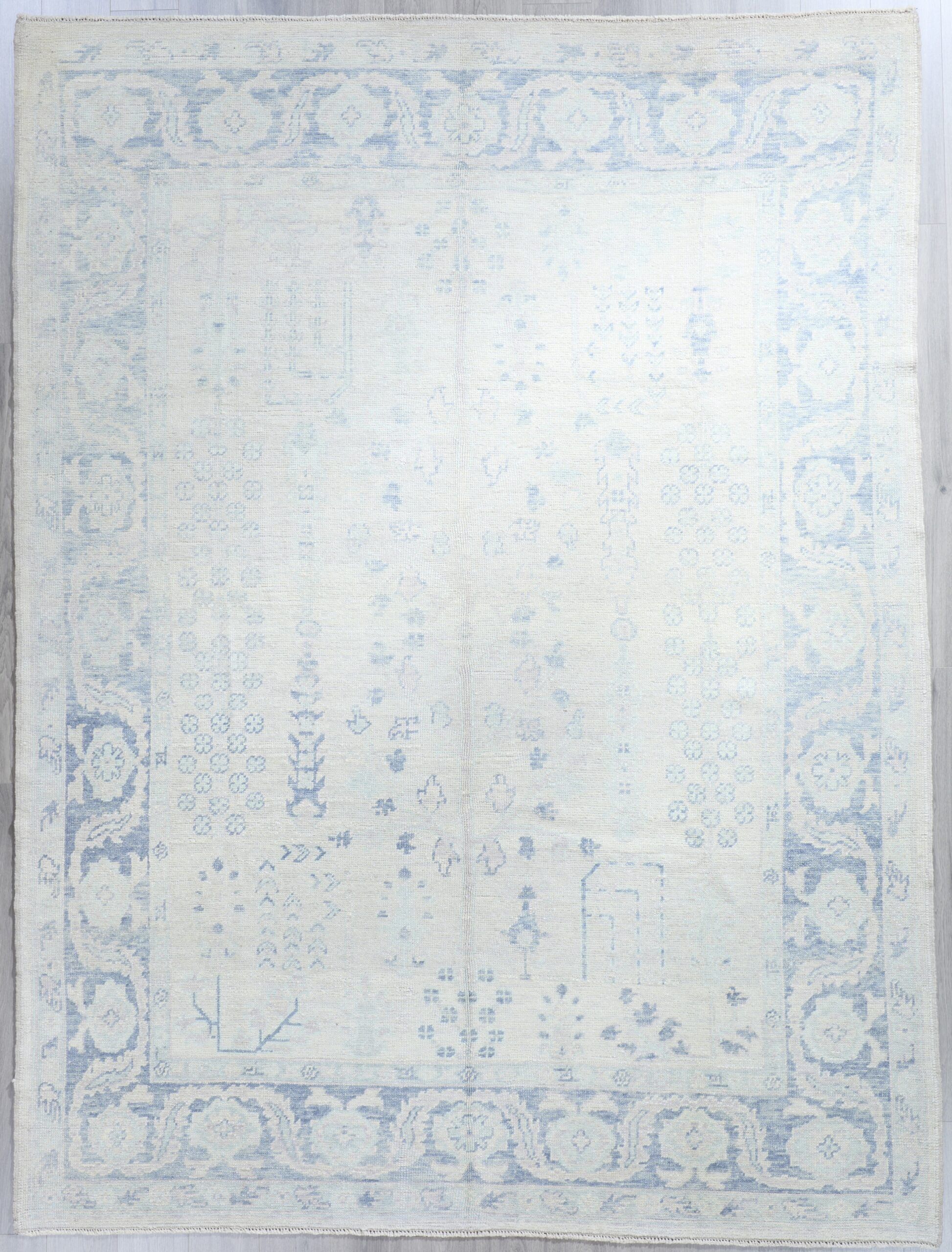This distinguished Turkish Oushak rug is hand-knotted in Anatolia using 100% fine mountain Angora wool and natural vegetable dyes. Renowned for its soft texture and luminous, gently aged palette, the Oushak design embodies timeless elegance and refined simplicity.