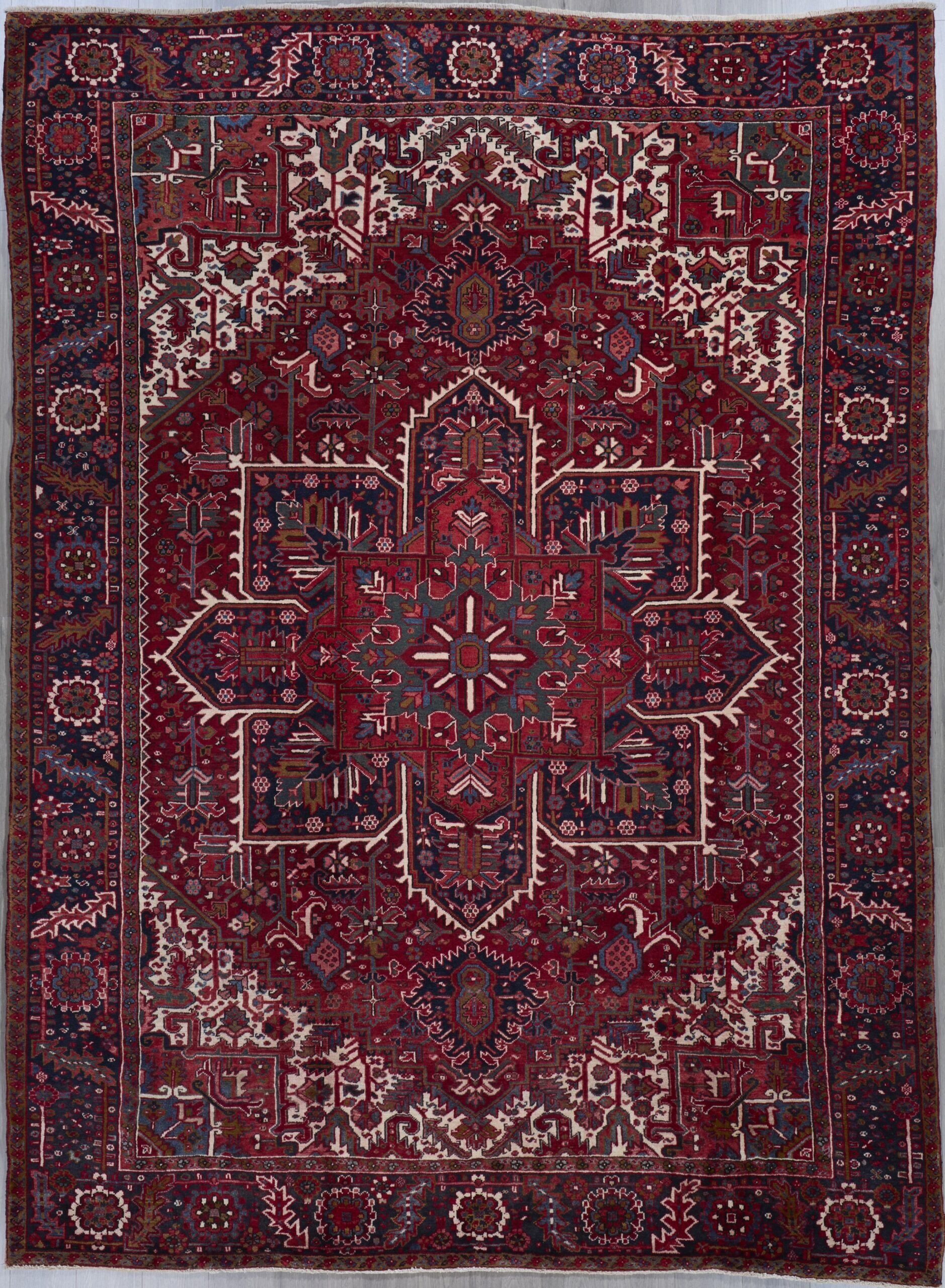 Hand-knotted in Persia from premium mountain wool, this vintage Heriz rug features bold geometric motifs and a timeless, enduring design—perfect for adding strength and elegance to any interior.