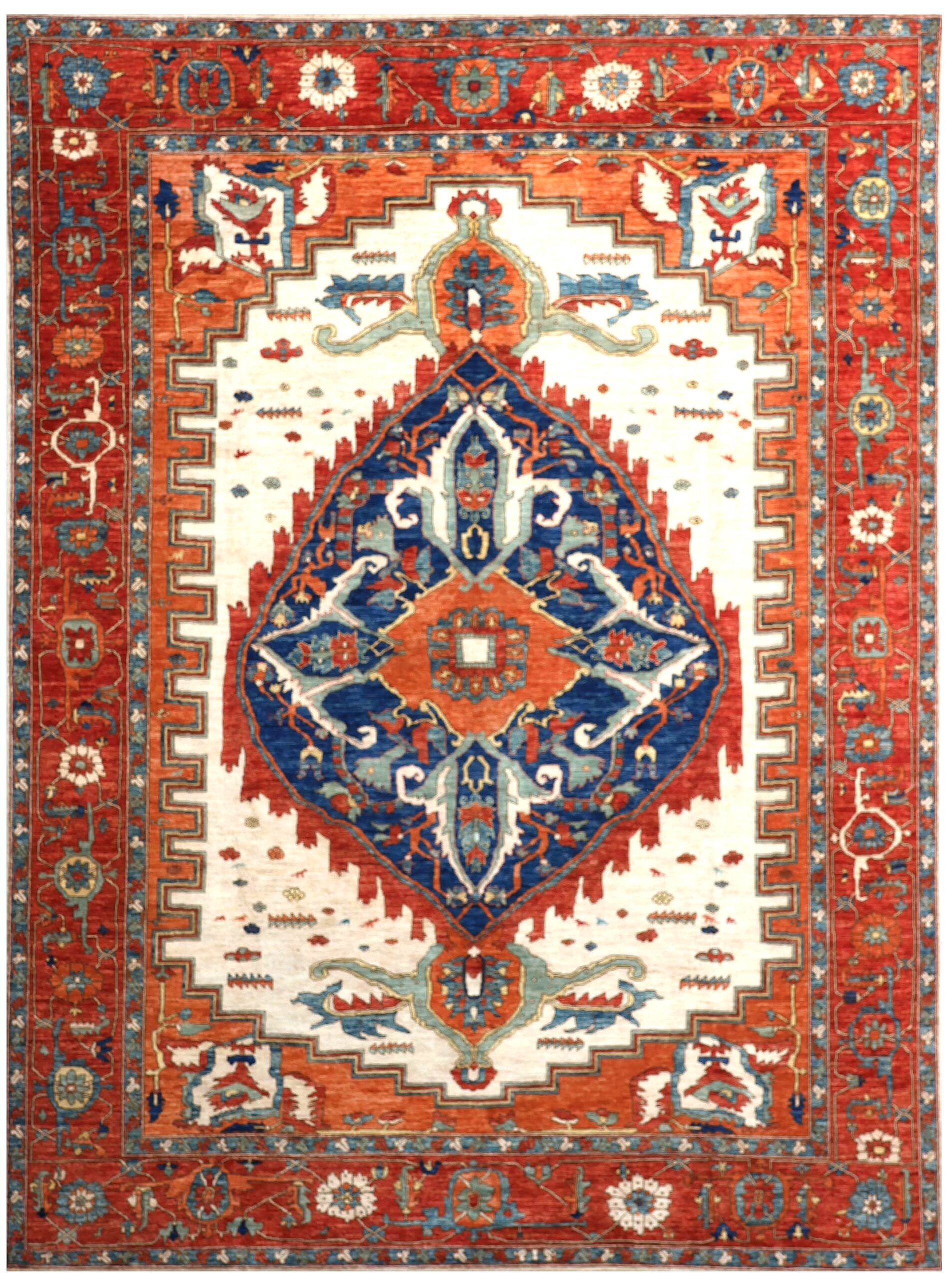 This finely hand-knotted Serapi Design rug is a tribute to Persian elegance, woven in Northern Afghanistan using fine mountain hand-spun wool. Its graceful medallion, balanced composition, and softly aged tones reflect the quiet grandeur of 19th-century Serapi masterpieces.
