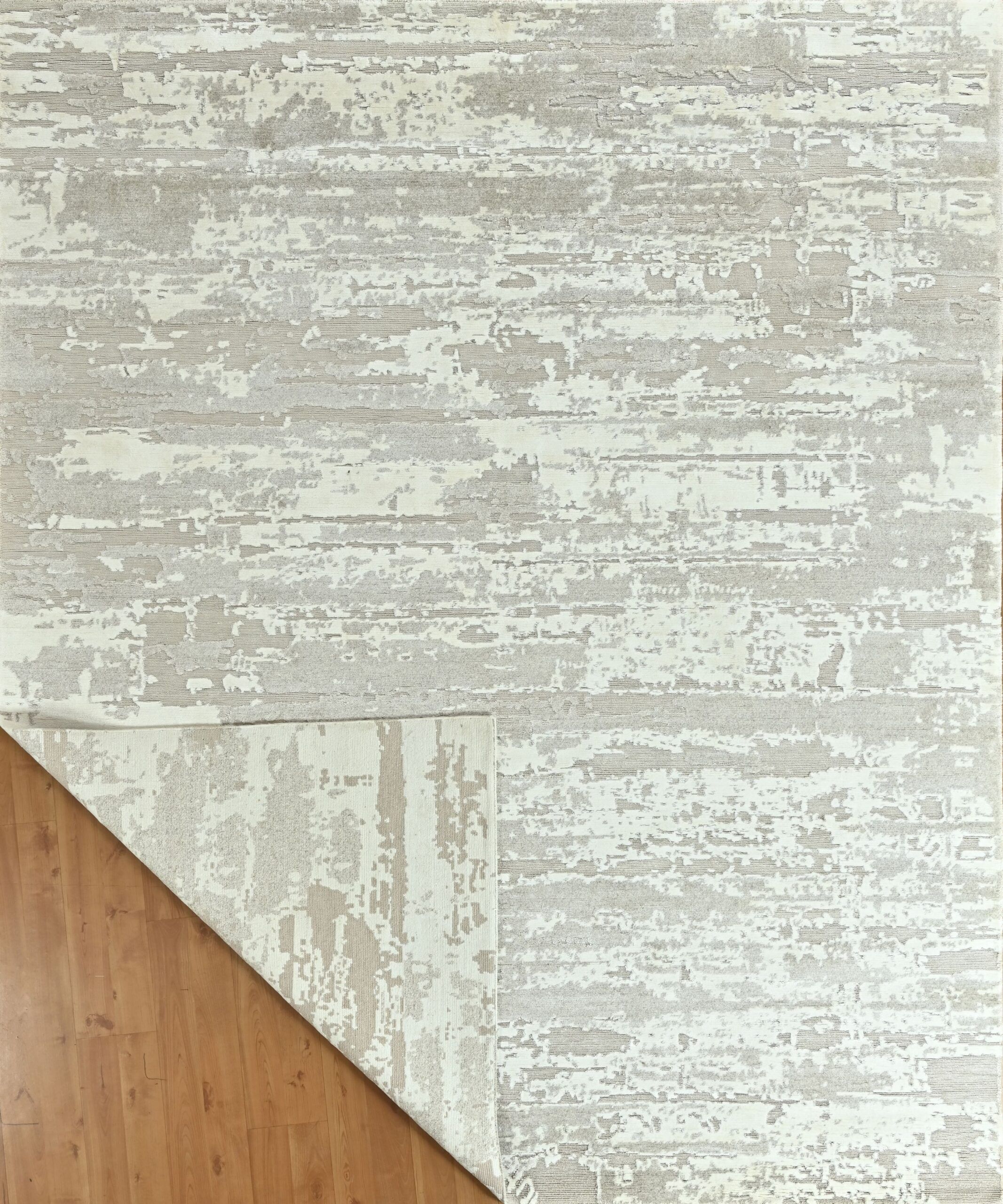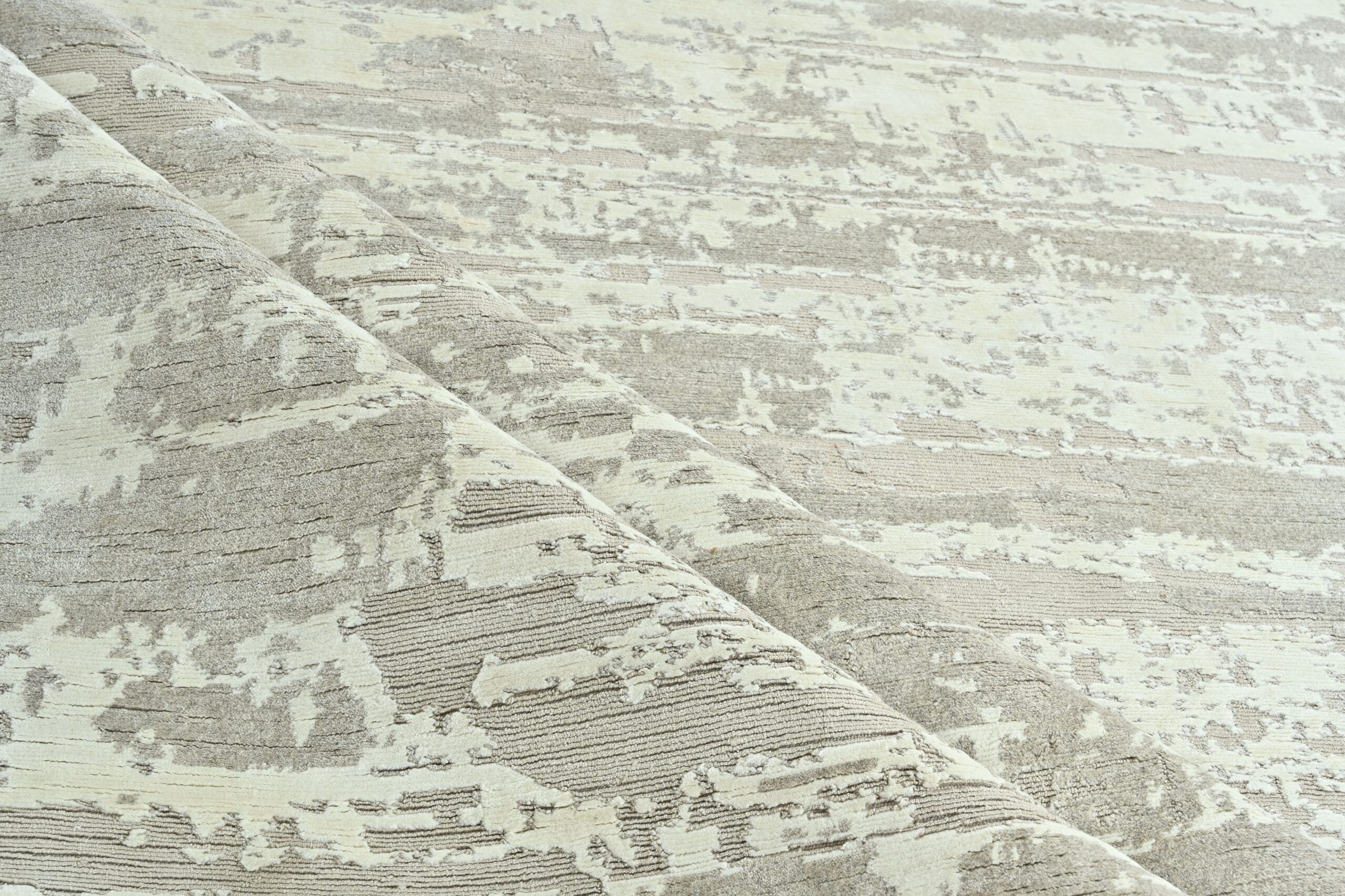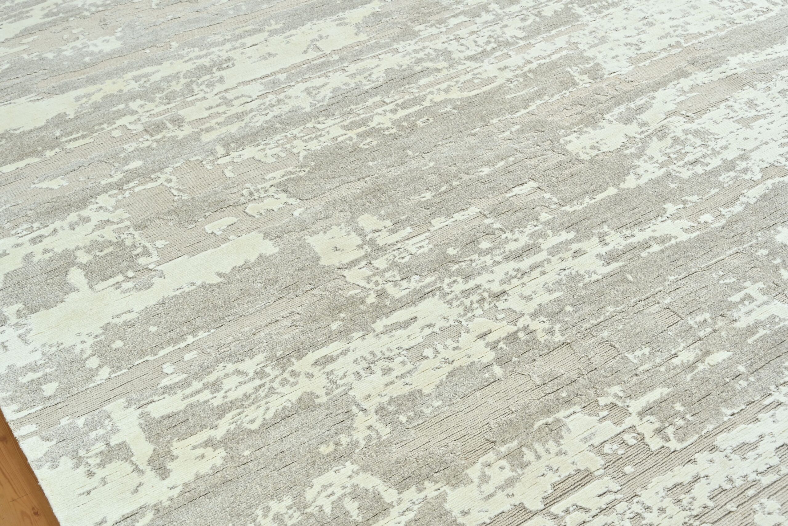 Crafted from a luxurious blend of wool and bamboo silk, this fine hand-knotted rug showcases a serene neutral palette and abstract contemporary design. Its soft sheen and refined texture bring quiet sophistication to any space, making it a timeless addition to modern interiors. A perfect balance of artistry and craftsmanship, exclusively from Kian Rug Company.