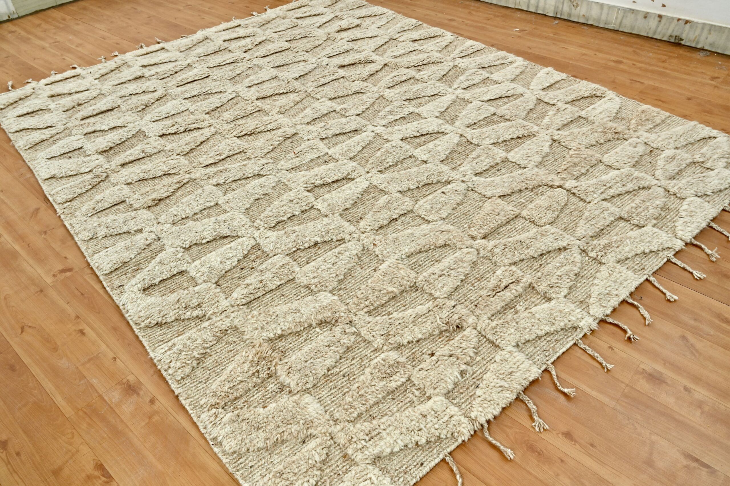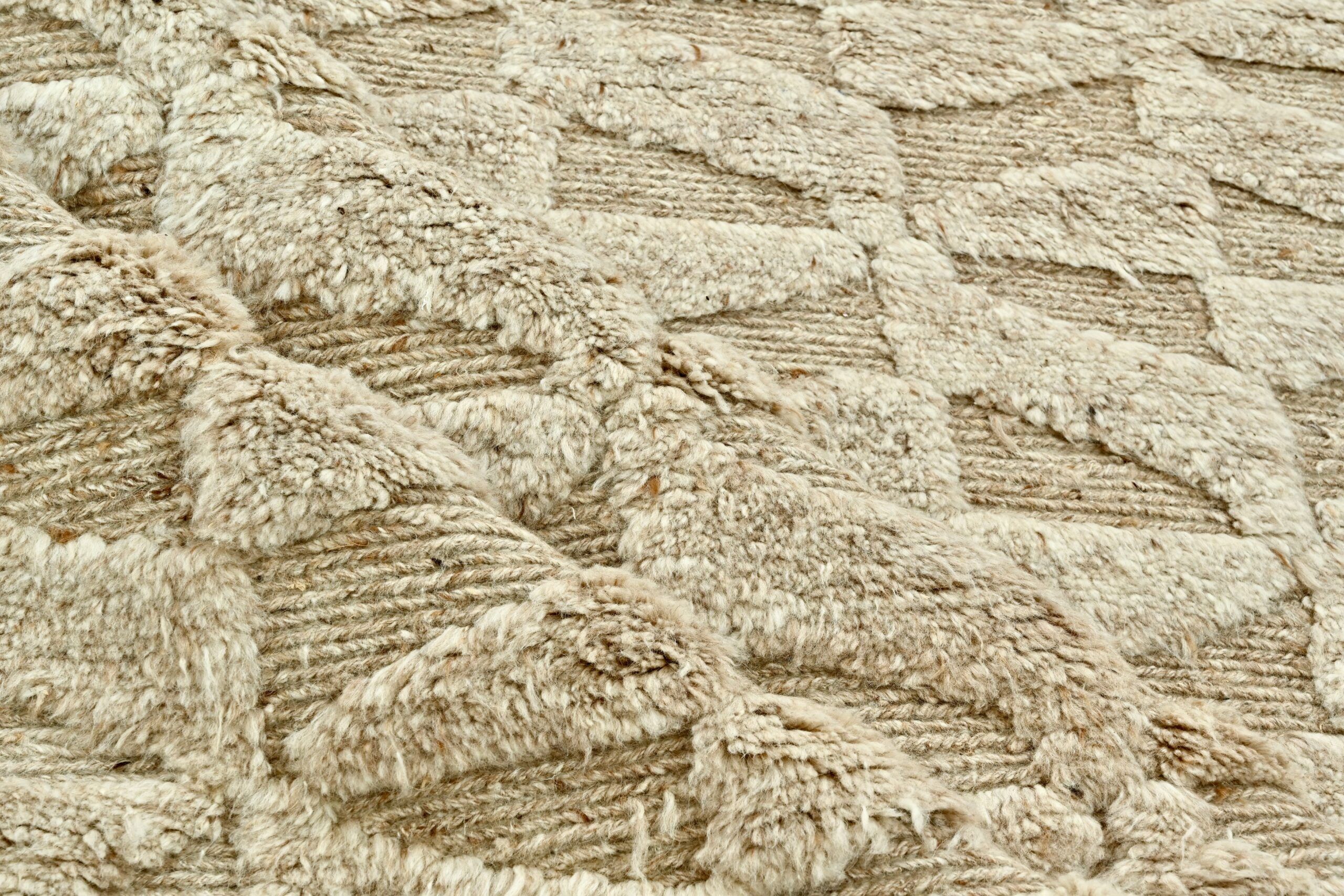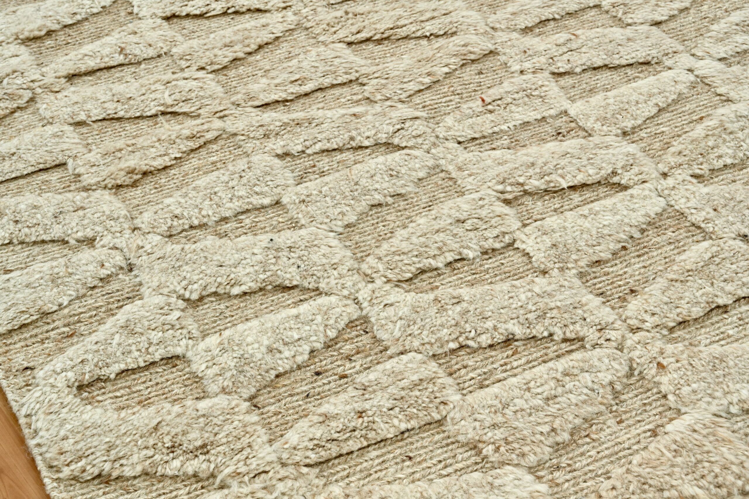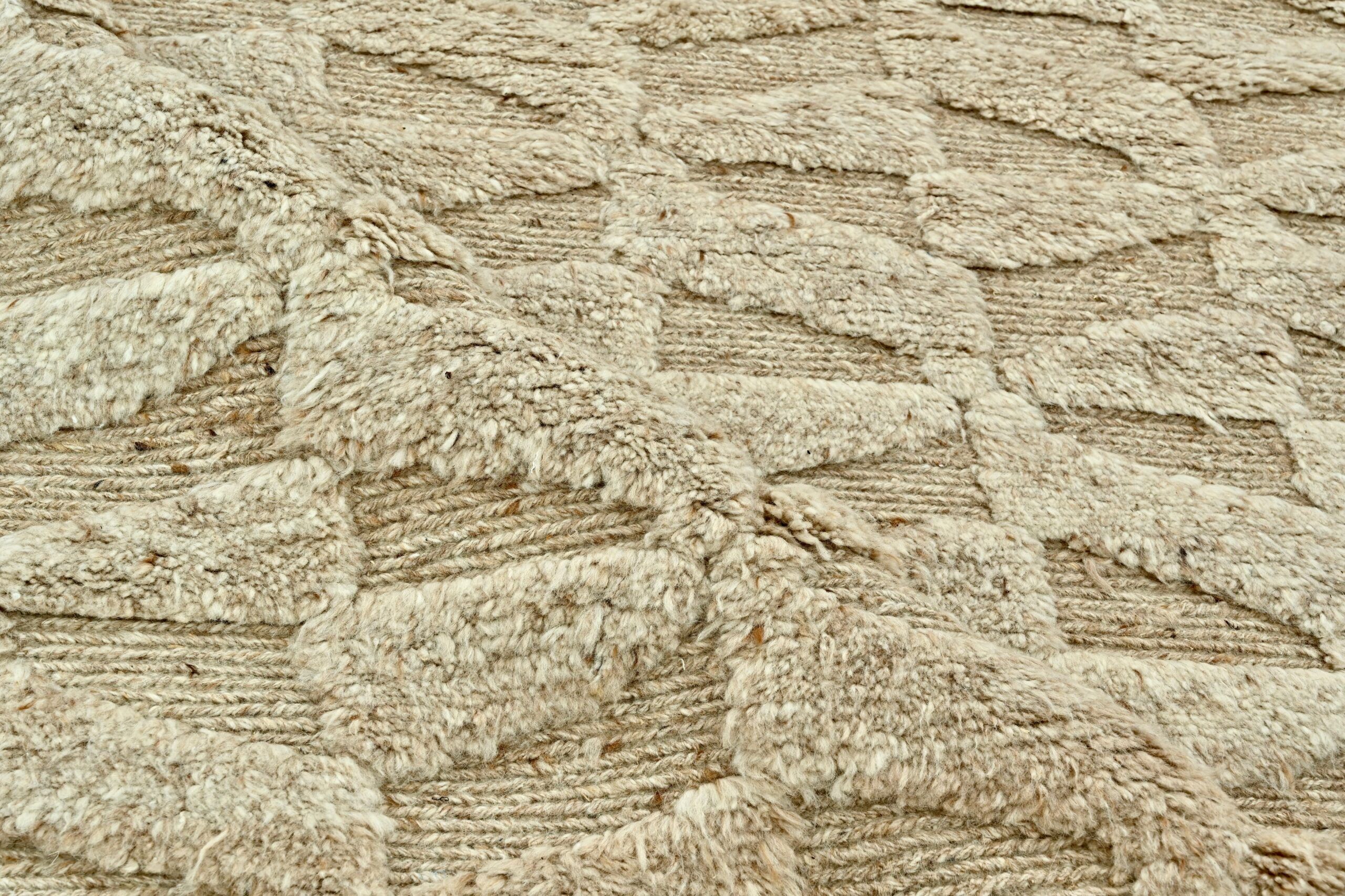 Artfully hand-knotted from 100% natural wool, this modern design rug features a warm camel tone and a sophisticated high-low texture. Its refined pattern and rich craftsmanship bring depth, warmth, and timeless elegance to any space. A statement of quiet luxury—only at Kian Rug Company.