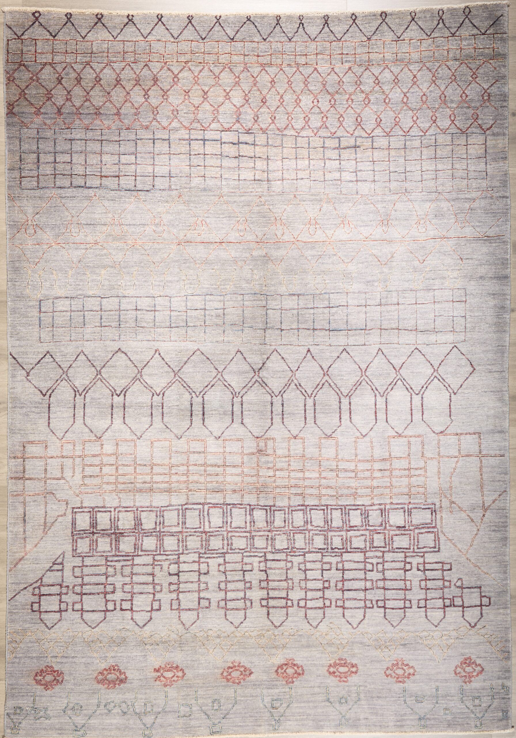 Expertly hand-knotted in Northern Afghanistan, this refined Moroccan design rug is crafted from soft, resilient mountain wool. Its minimalist pattern and subtle texture echo the timeless charm of Berber aesthetics, reimagined through the lens of Afghan craftsmanship. A sophisticated union of cultural tradition and contemporary elegance—curated by Kian Rug Company.